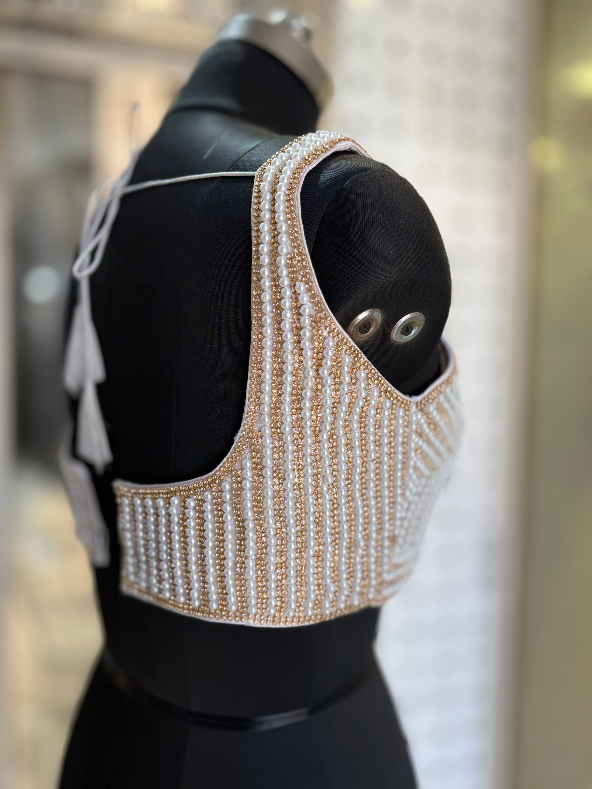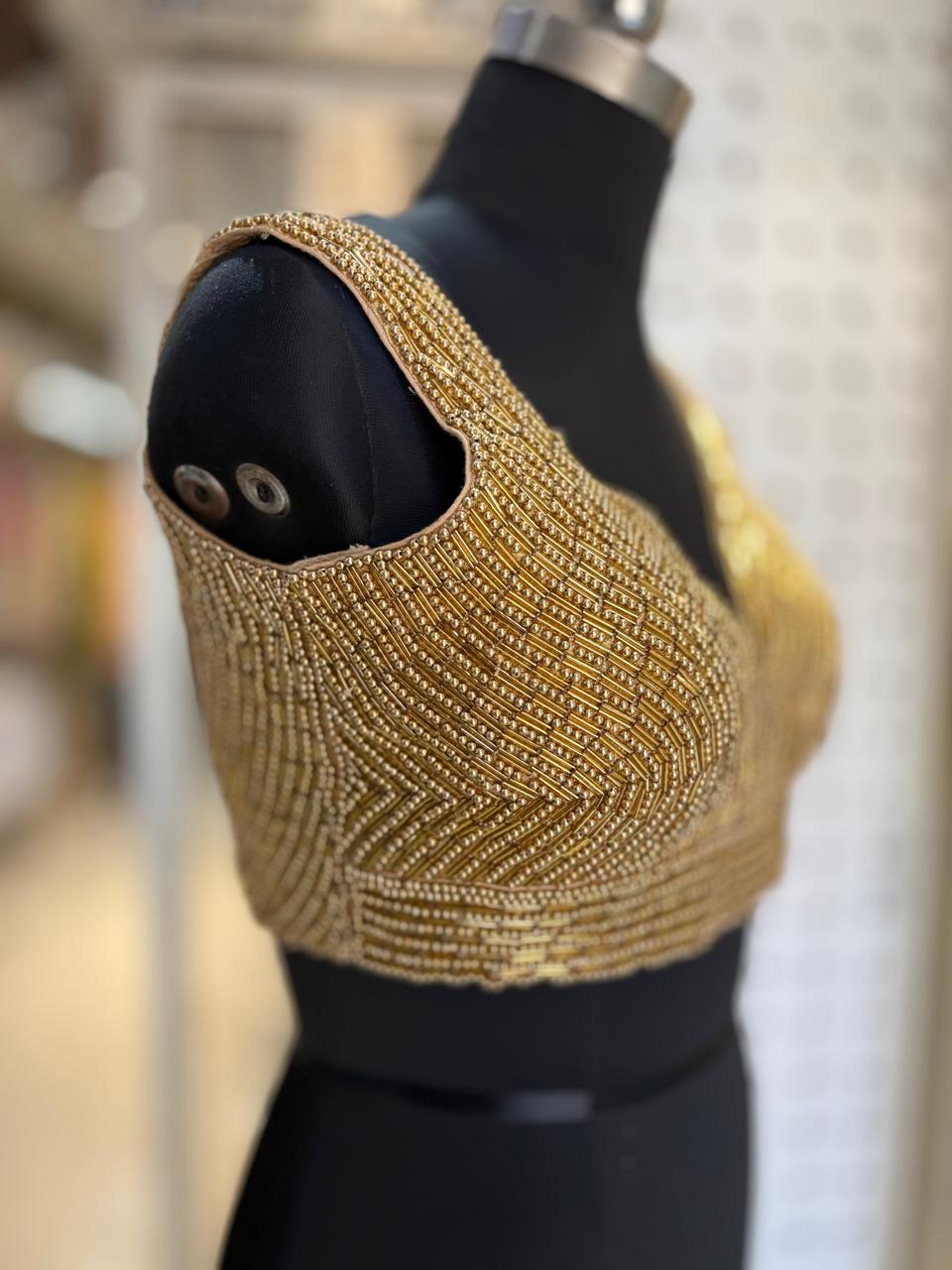 Jeevha’s Blouse Collection. Crafted from luxurious raw silk, this piece radiates sophistication with its rich texture and natural sheen. The blouse is adorned with intricate full handwork, showcasing artisanal craftsmanship that adds depth, detail, and a touch of regal charm. Designed for grandeur and grace, this gown is perfect for weddings, receptions, and any occasion where you want to make a lasting impression.