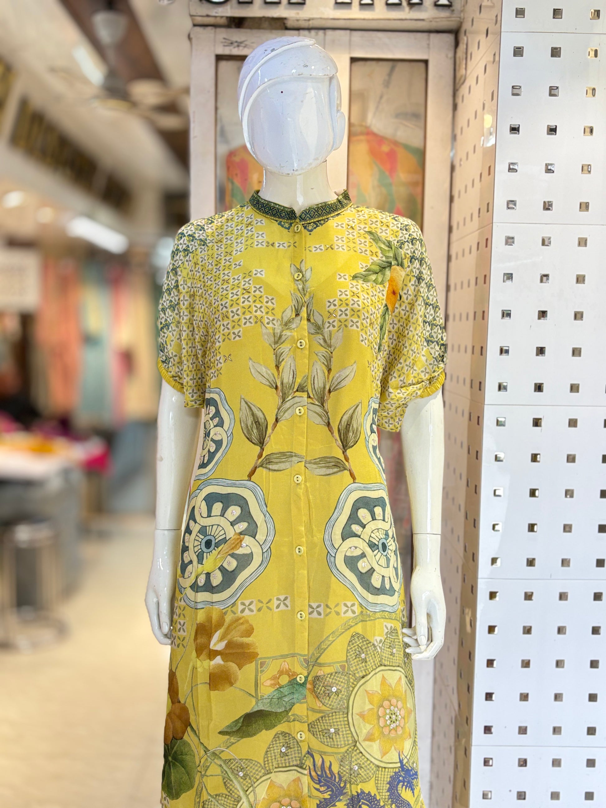Elevate your wardrobe with this Designer cordset crafted from pure crepe fabric, featuring exquisite digital prints that bring vibrant patterns to life. Enhanced with meticulous handwork, each piece showcases expert craftsmanship ensuring a unique and refined finish. Ideal for those seeking elegance with a contemporary touch.