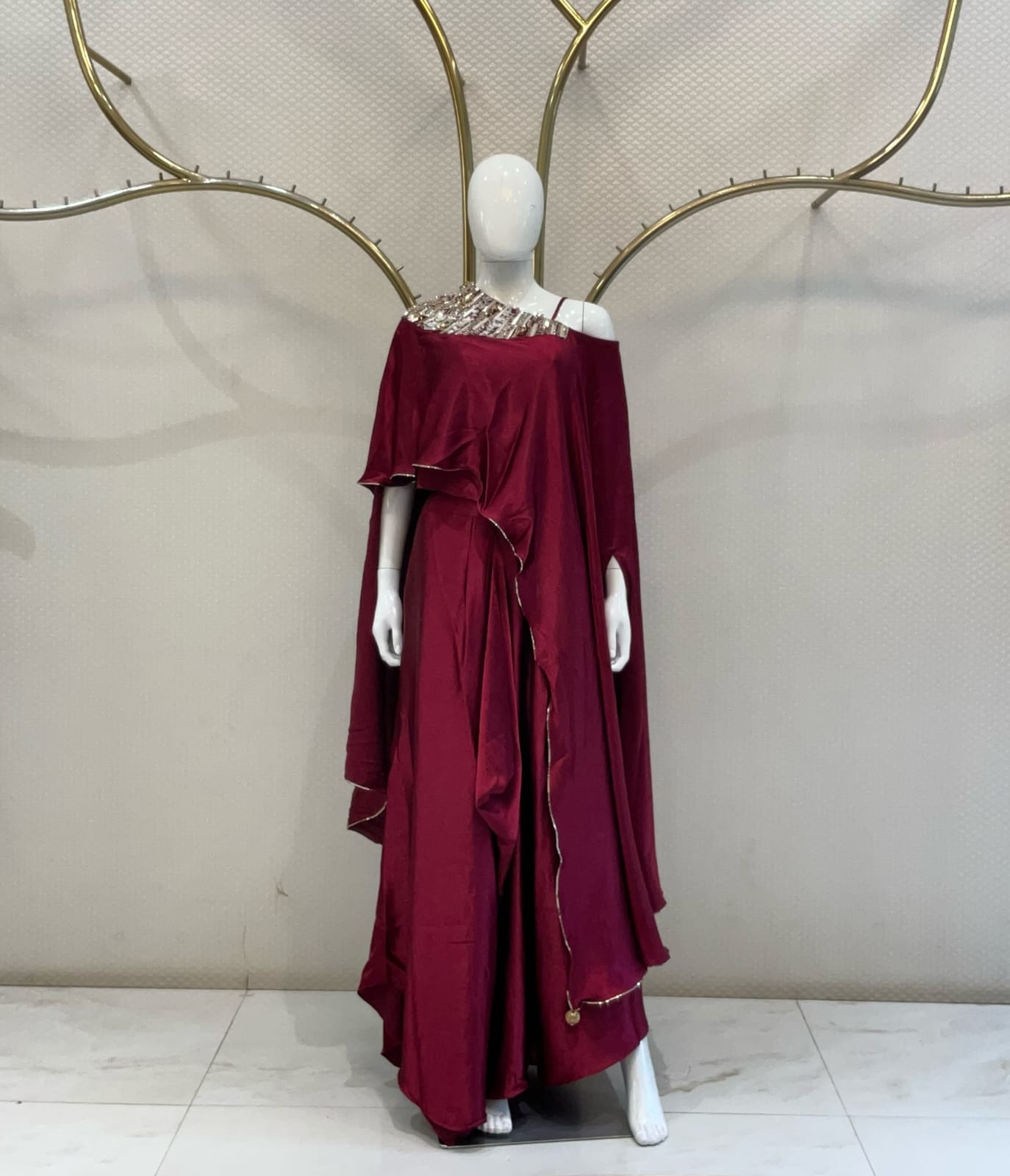Elevate your wardrobe with this stunning Indo-western palazzo crafted from pure chiffon silk. The luxurious fabric drapes beautifully, offering both comfort and sophistication for any occasion. Perfect for festive gatherings, weddings, or casual elegance, this piece combines traditional aesthetics with contemporary silhouettes. The breathable chiffon silk ensures all-day comfort while maintaining its graceful flow. An ideal choice for those seeking versatile, refined style that transitions seamlessly from day to evening wear.